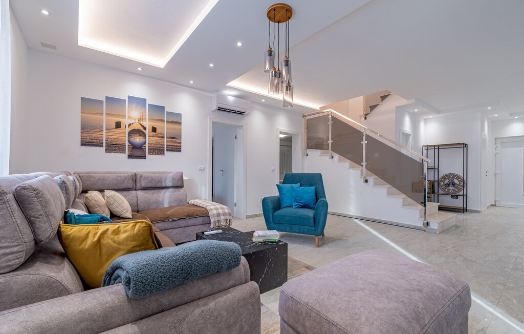 With its stylish furnishings, this stately home is perfect for a fantastic holiday. The subtly coloured interior exudes warmth and comfort in equal measure. Relax completely on the comfortable sofa area, enjoy an afternoon nap or browse through your holiday reading. Conjure up delicious dishes in the modern kitchen before enjoying a cosy meal at the large dining table.