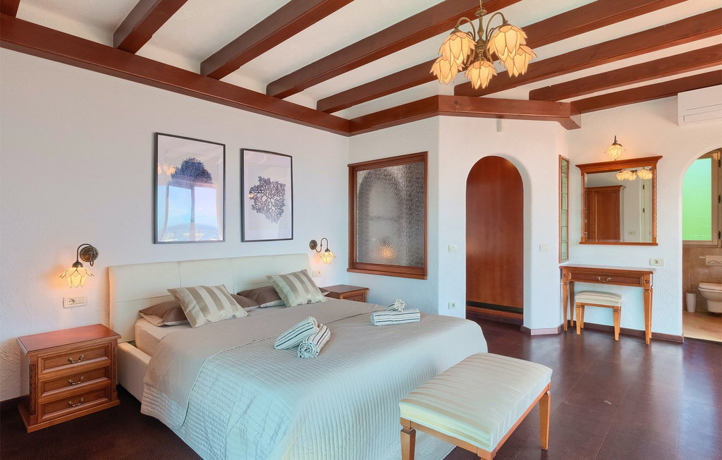 This beautiful modern villa is perfect for a larger family or group of friends because it offers the great amount of space and comfort, while the stunning view of the Adriatic is a charming bonus. It sports 5 spacious bedrooms and can accommodate up to 10 guests. The attic is specially designed as a small playroom for children. Every window of this magnificent property offers an amazing sea view, and we promise you will never get enough of that beautiful smell of sea in the summer. There is a private pool with heating and massage possibilities, while the outdoor area has garden furniture and children’s playground – everything essential for relaxing and fun vacation.