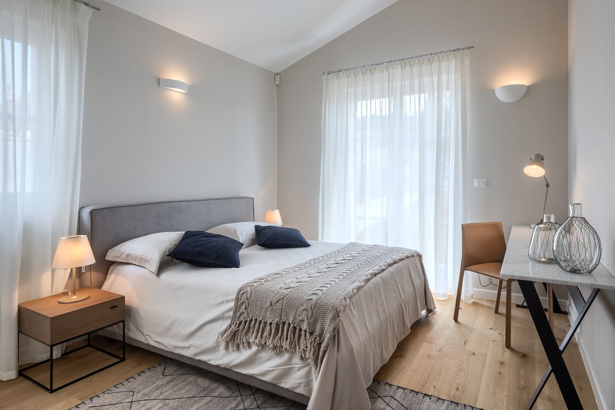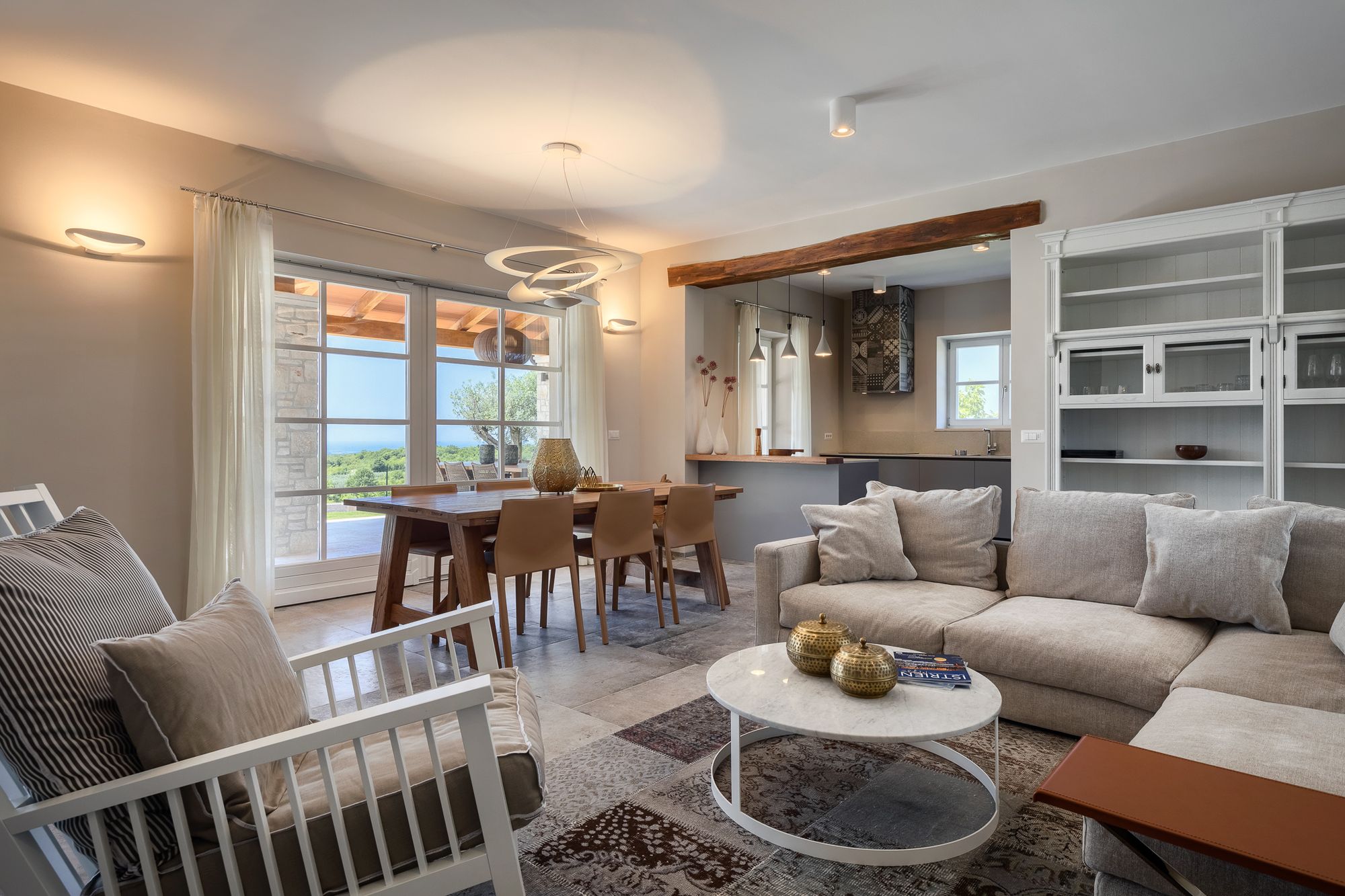 This wonderful new villa is a latest developement by a famous Istrian Designer B. Ruzic, who specializes in combining Istrian heritage architecture and modern, contemporary design. It has 4 bedrooms, 4 Bathroom and a toilet. A large panoramic pool is located in front of the villa, boasting a 180 degrees view of the sea and the valley. Surrounded by the olive orchids and wineyards, yet close to Visnjan center with its shops, cafes and restaurants. Pamper yourself with an exclusive holiday in Villa Julia!