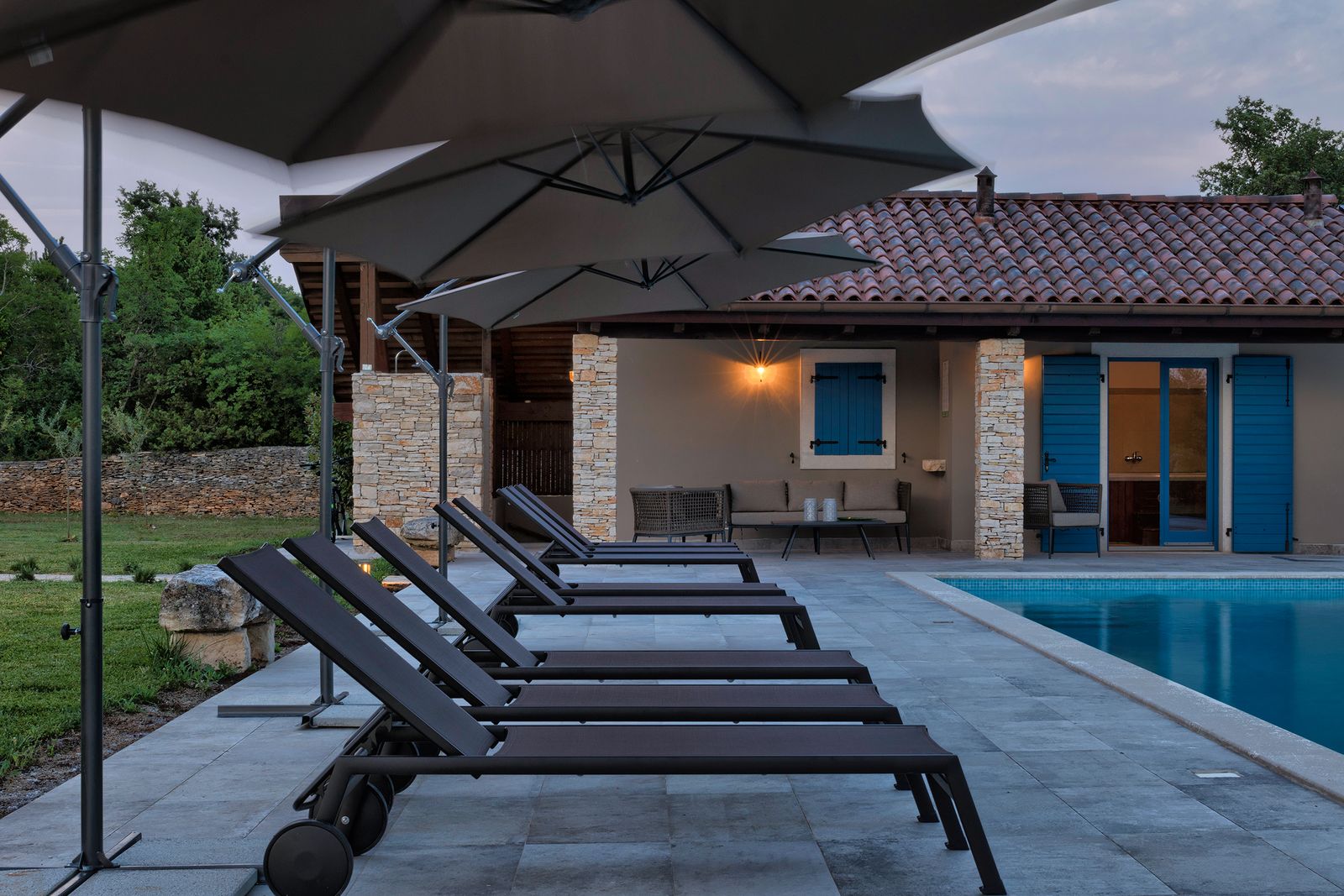 This particular property is a wonderful large "Stancija", a name for old noble and landowner houses in Istria ... like a "finca" in Spain. It has over 250 m2, a 60 m2 heated swimming pool, 4 bedrooms and 2 additional rooms, several dining tables, a lounge area, a pool house, a sauna, a gym, etc. It has been renovated by a renowned Istrian interior designer. B. Ružić is known for combining tradition and contemporary design in a fascinating way. The result is this large property that will give you and your family a wonderful and peaceful holiday.