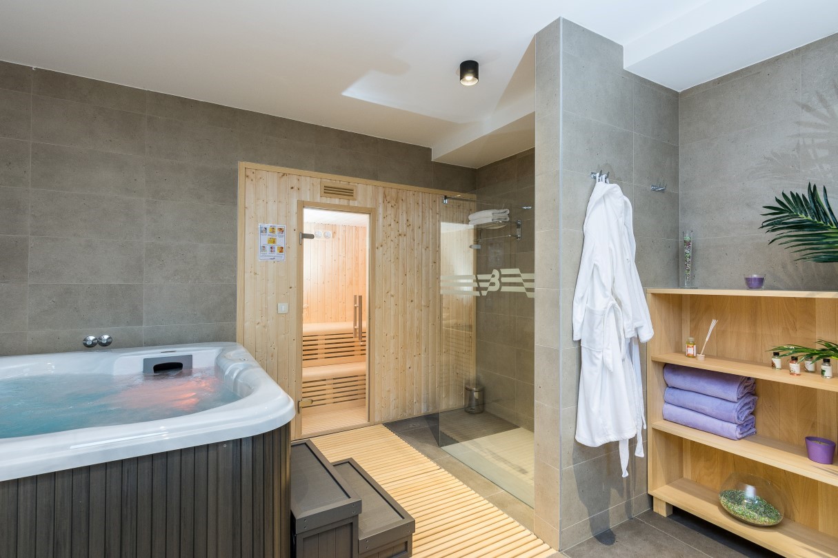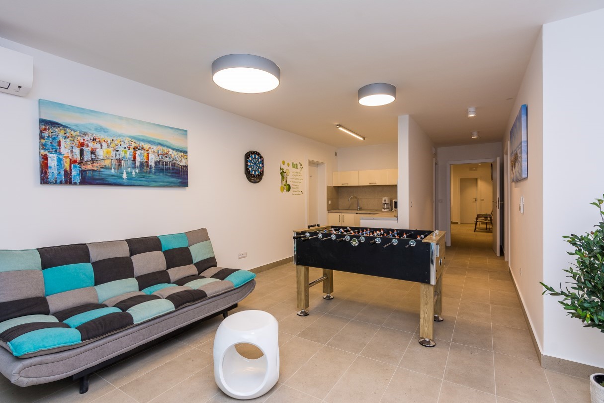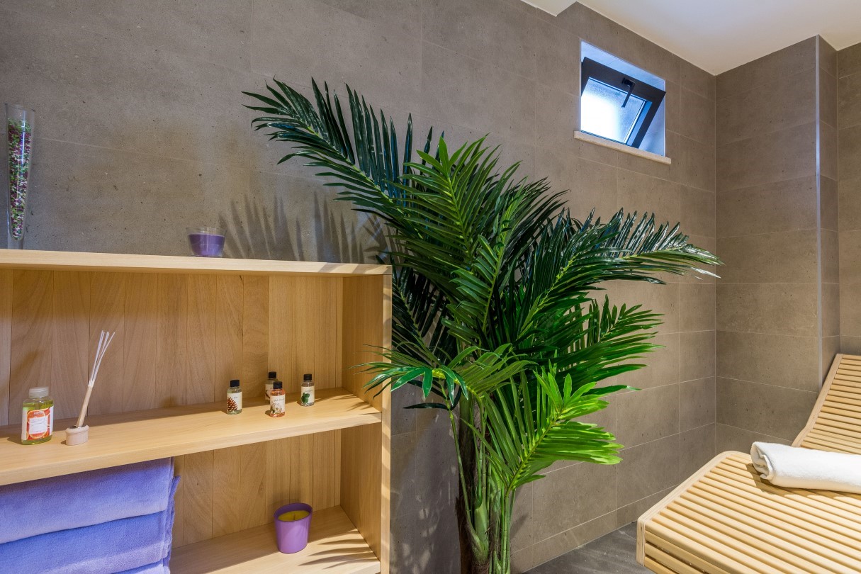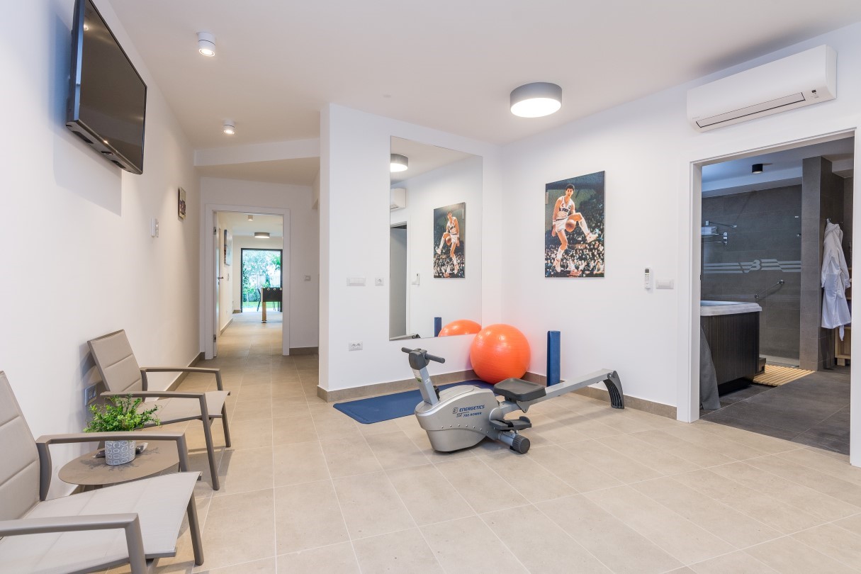 If you want complete privacy, retreat to the SPA corner and enjoy hydromassage tub or Finnish sauna. For those who need a more active holiday there is a gym and a playroom where you can play football or darts while the youngest can test their gaming skills with PS4. After a day filled with activities, relax in the privacy of one of the five comfortable and air-conditioned en suite bedrooms with terrace and TV or delight in a beautiful sunset on the terrace.
