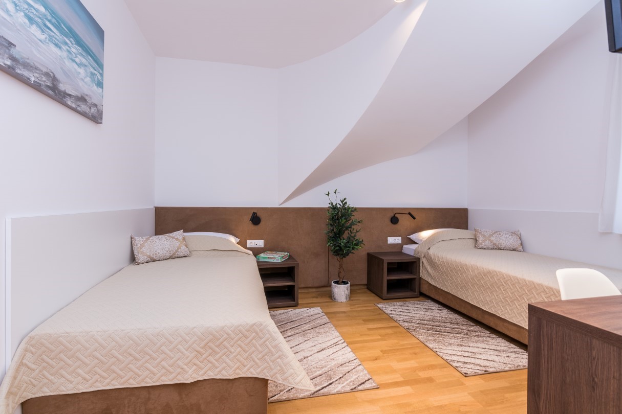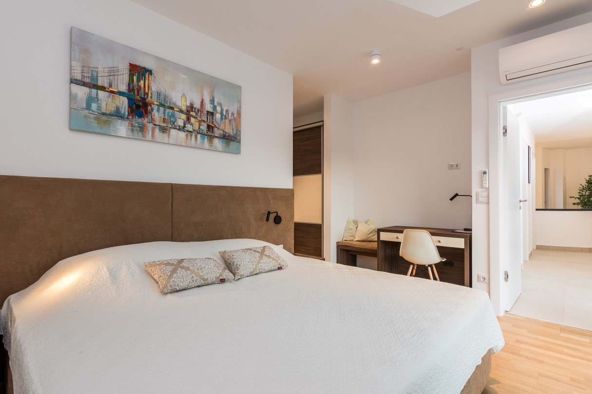 Villa Biograd is fully air-conditioned holiday home and Wi Fi covered and it has its own private parking lot. This spectacular luxury property with five comfortable en suite bedrooms can host up to ten guests. Max 10 Adults + 2 Children