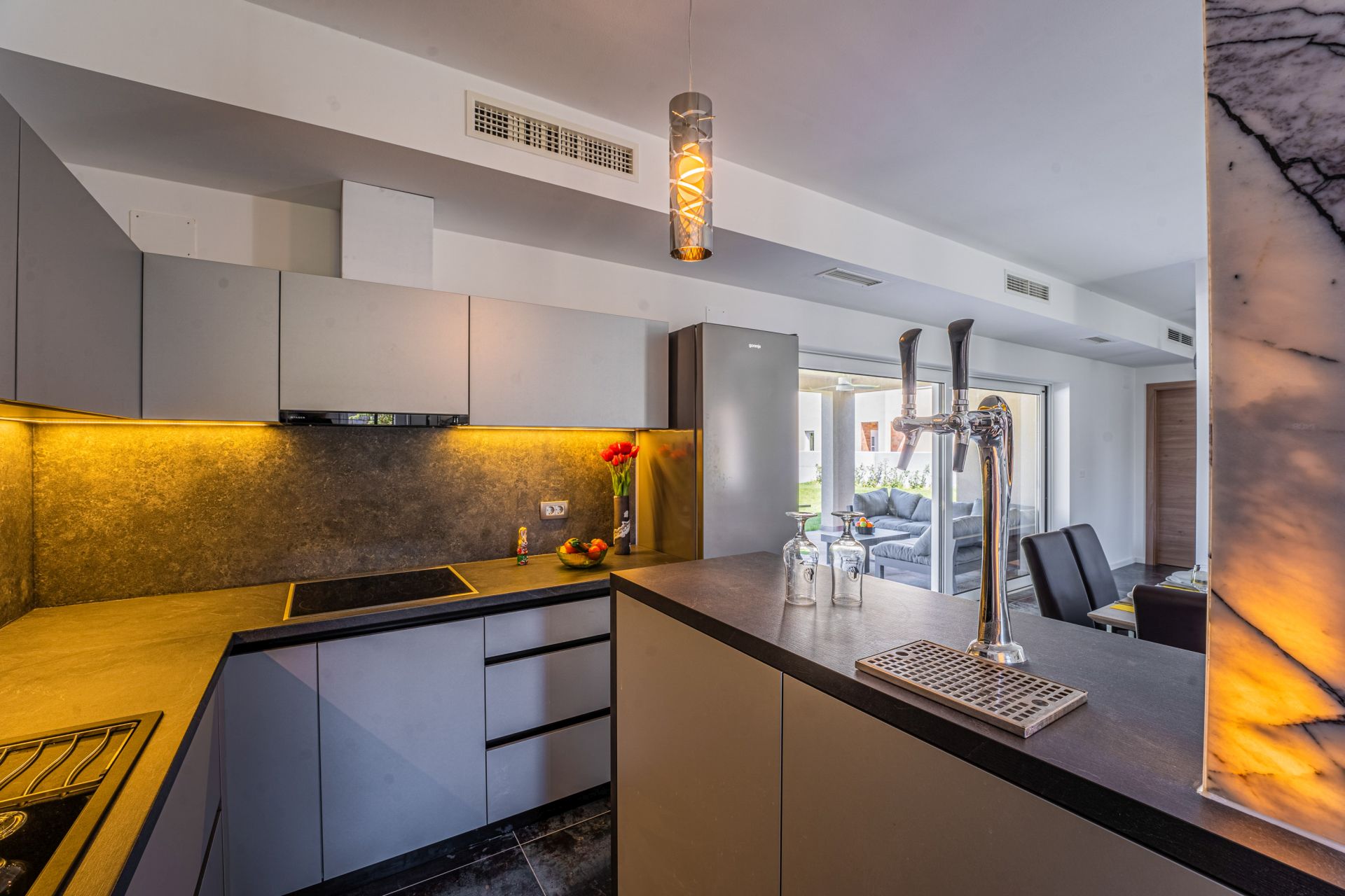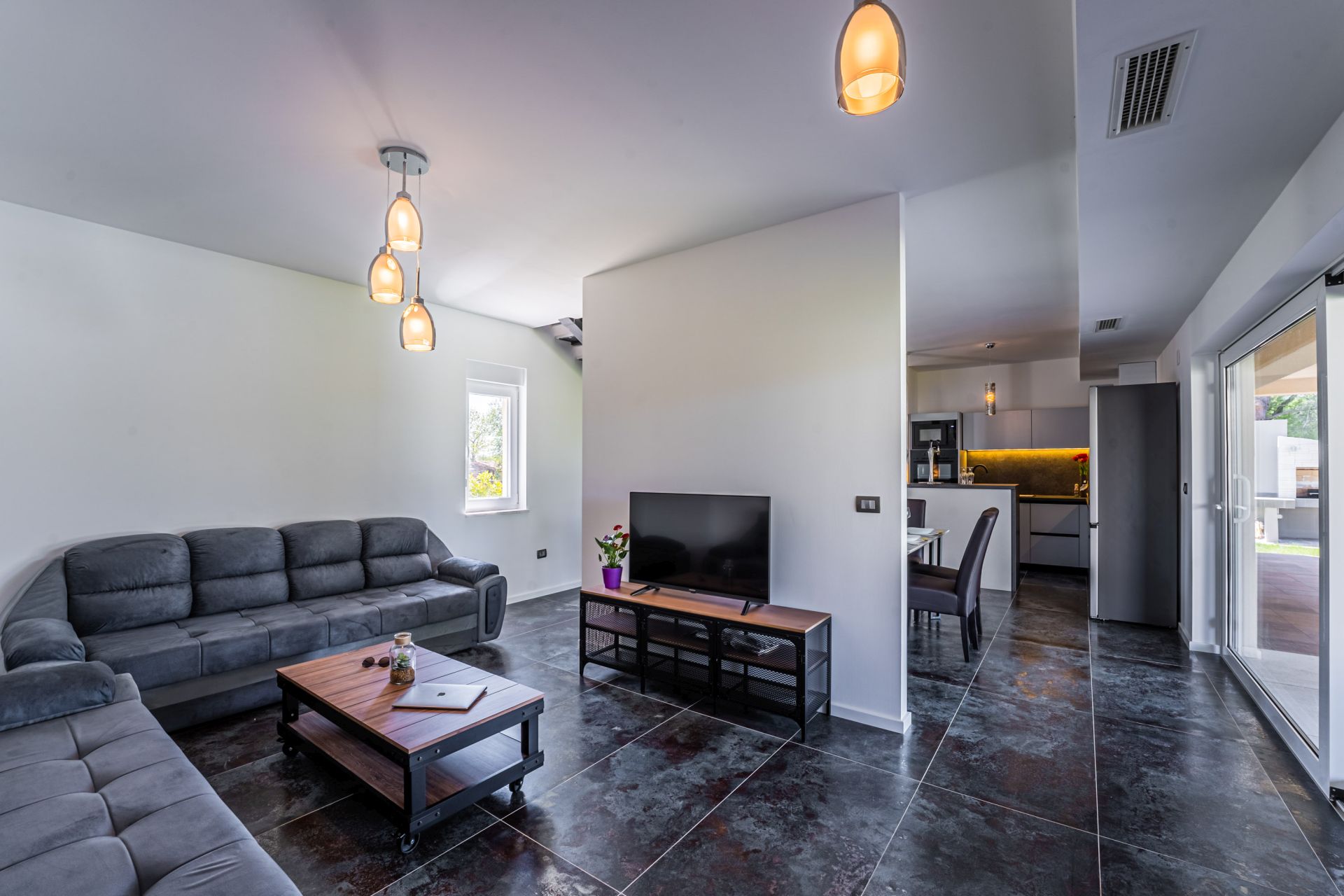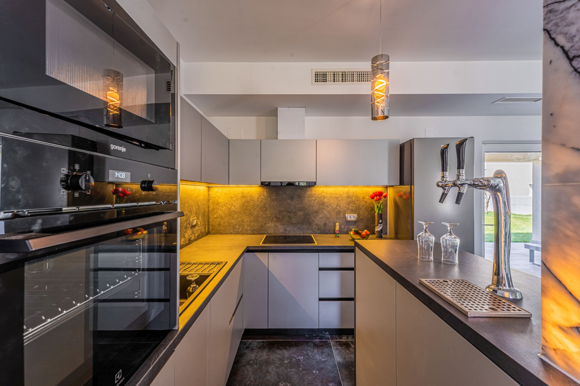 There are 4 private bathrooms fully equipped with all needed amenities, assuring that there will never be a morning queue. The villa also features 2 comfortable living rooms. They are adorned with cozy sofas and entertainment units, perfect for winding down or enjoying group activities.