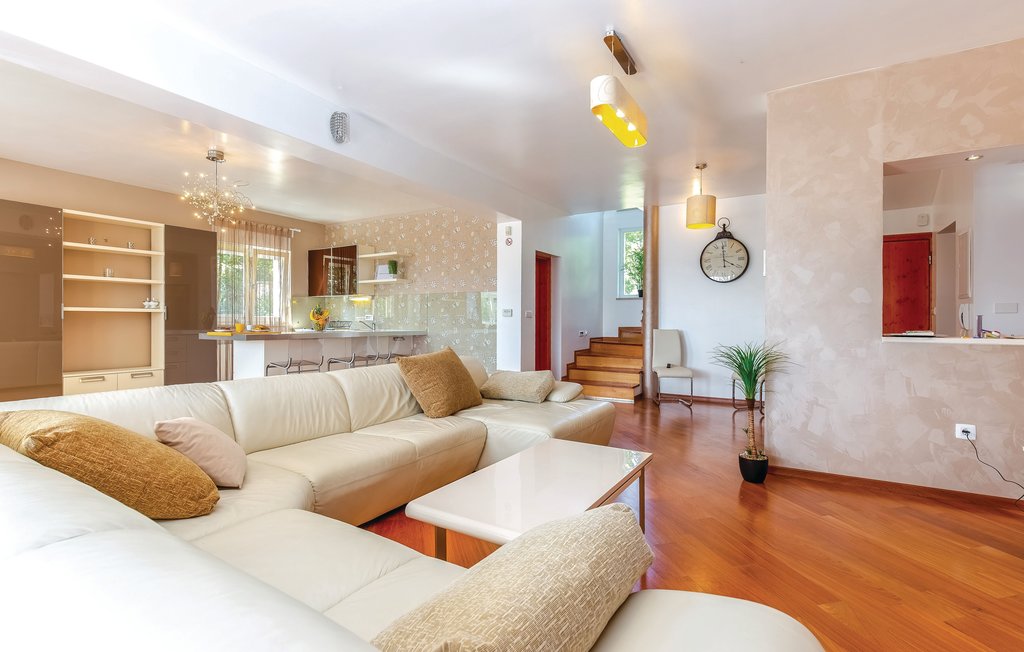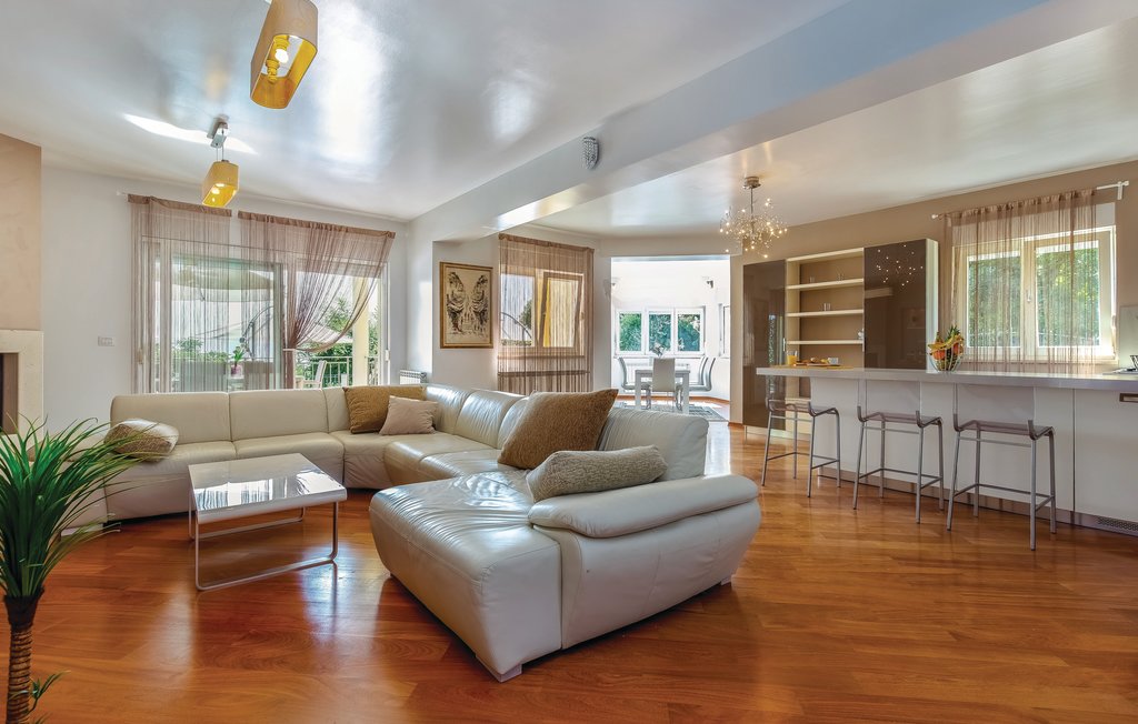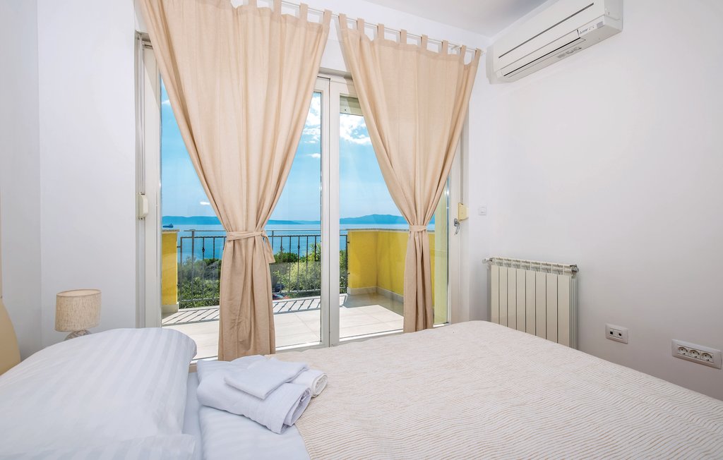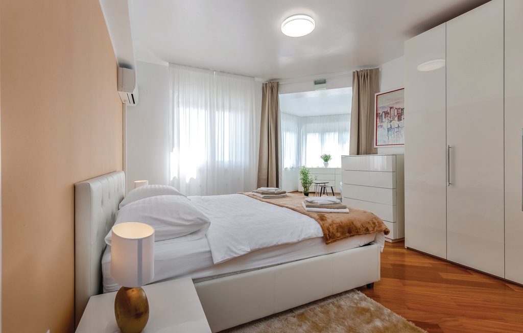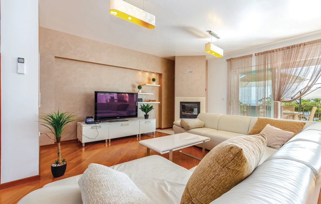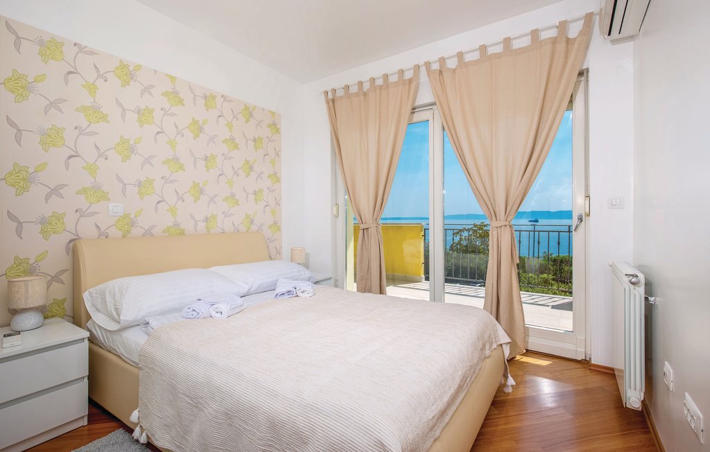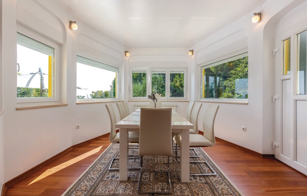 This wonderful semi- detached villa is located just 100 meters from the beaches of Kostrena, the posh residential part of Crikvenica and Rijeka Riviera. It has 5 bedrooms, 6 bathrooms, offers deluxe holidays for up to 10-12 guests. Villa Romy offers a large 48 m2 pool, a party cellar, where you can celebrate during your vacation. It is decorated in a contemporary, modern style, fully airconditioned, bathrooms are large, some of them ensuite to the bedrooms. The facilities include a open barbecue, TV, PlayStation, large kitchen and a bar. The Mediterranean garden will sweep you away with the enchanting scents of rosemary. Pamper yourself and spend holidays with friends or family in this unique villa! Max 9 Adults plus 2 Children under 12 years