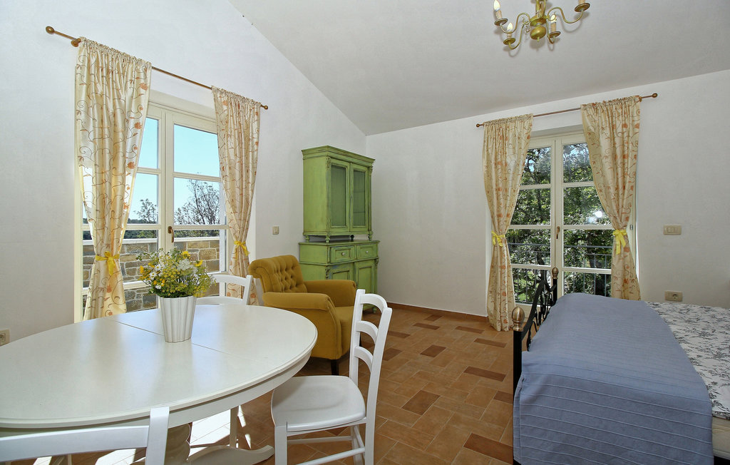 This unique property is located in the romantic village Trviz surrounded by karstic rocks , fragrant Istrian forest and spectacular views. The house has a unique charm . The combination of modern and rustic , stone walls , the pool or the large drafty space make this property must in planning your vacation in Istria . The house has 250 m2 , 6 rooms where 12 + 2 guests can be comfortably accommodated . The property includes a garden area and on 24000 m2 , and offers a lot for your pleasant families or friends vacation.