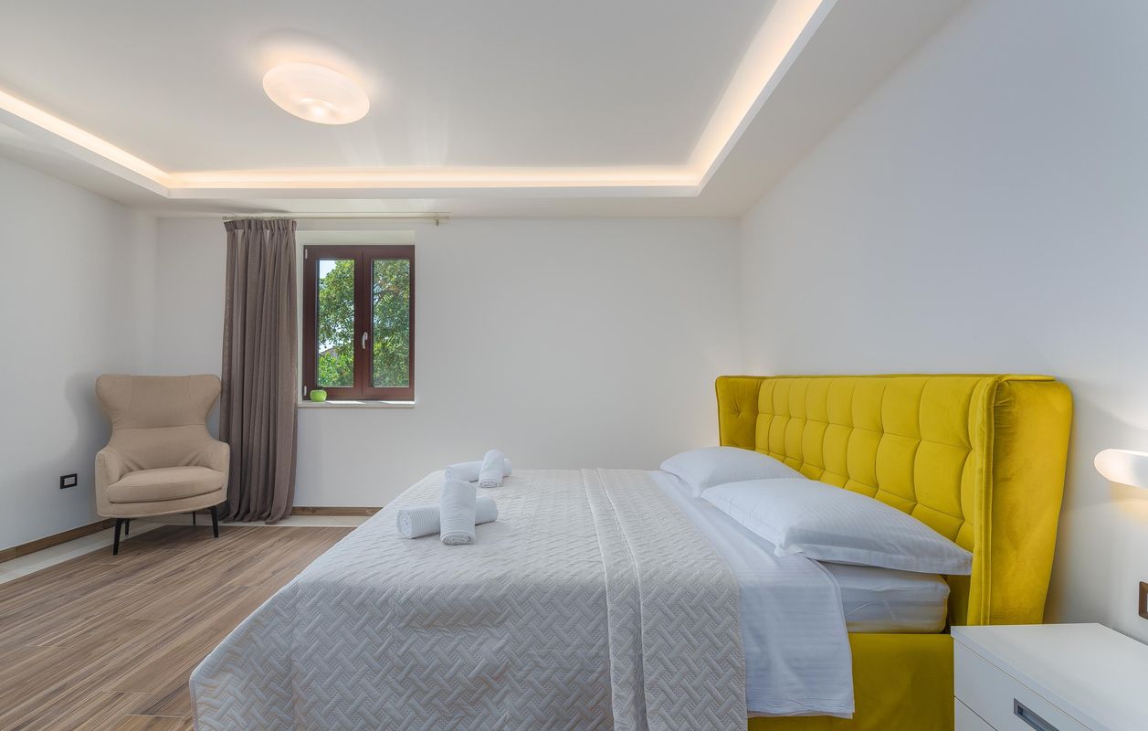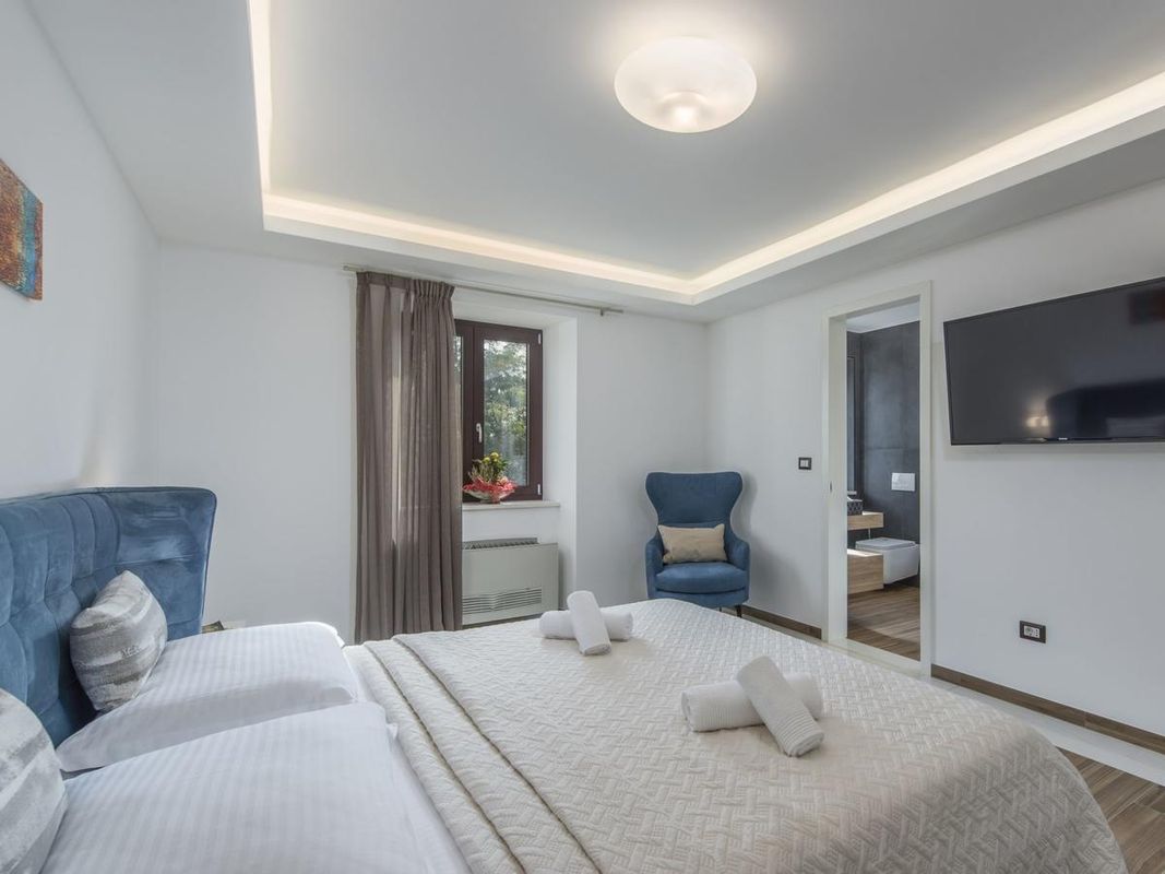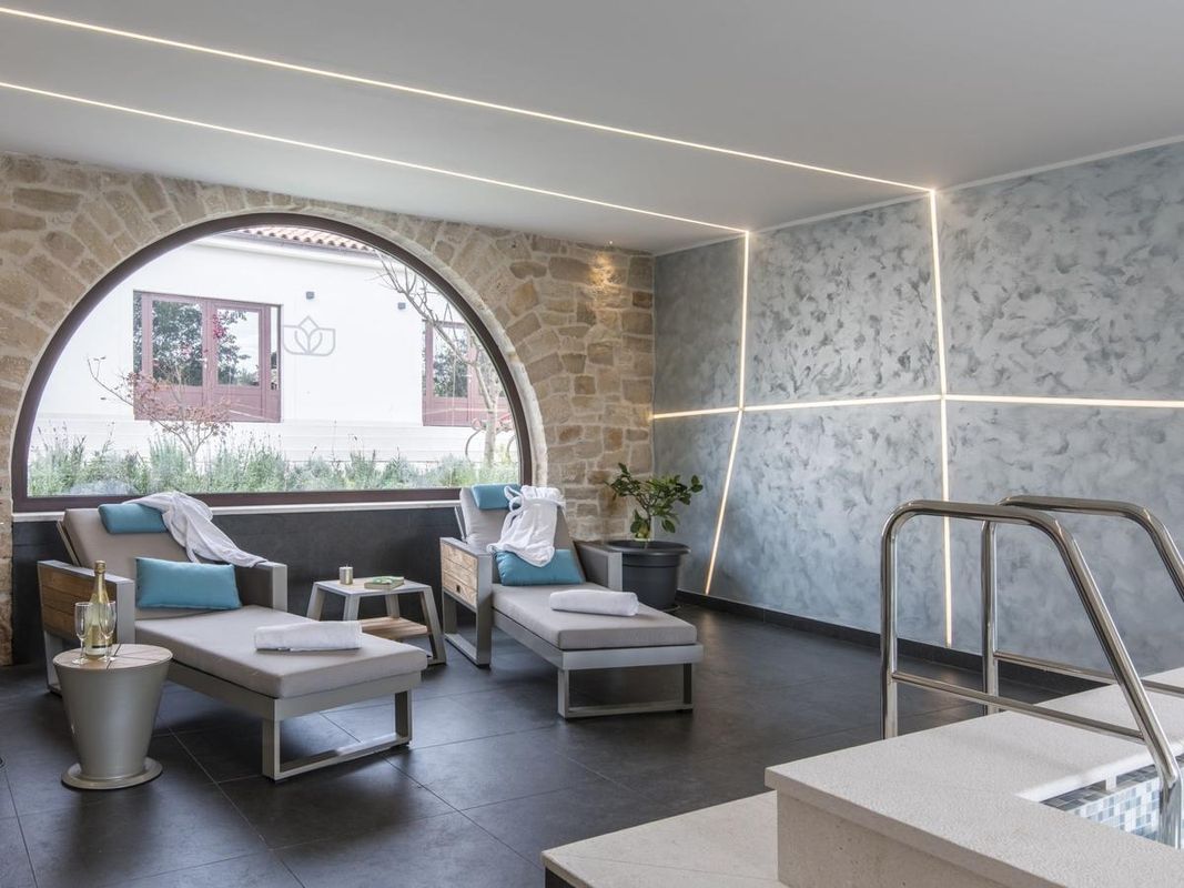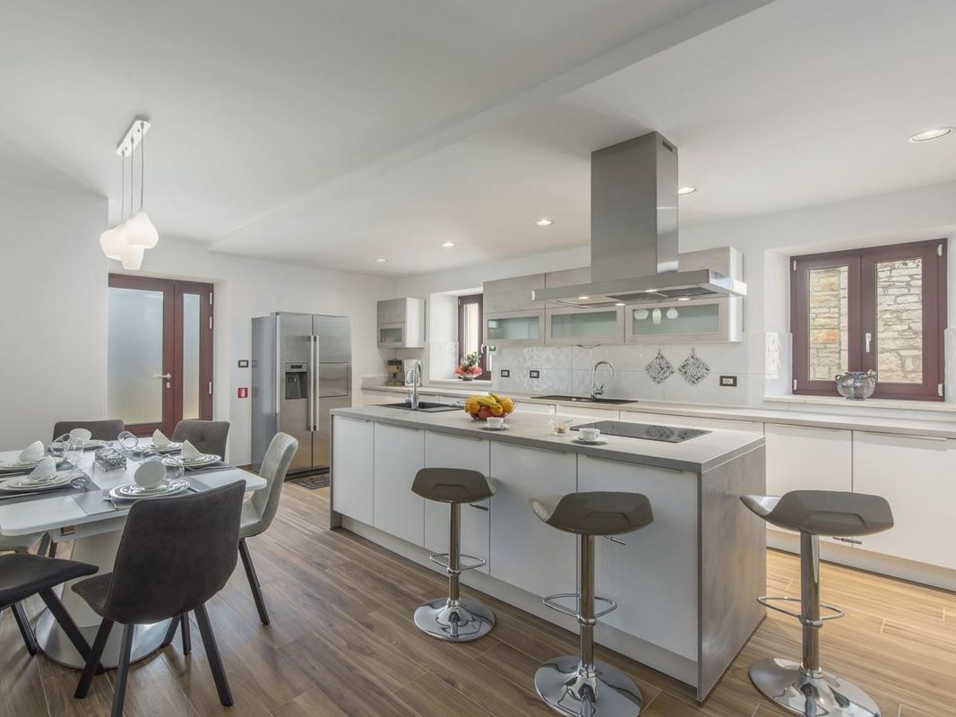 This wonderful villa is a successful conversion of an original Istrian stone house into a modern villa with pool. It boasts over 400 m2 of internal surface, has 4 large bedrooms, 5 bathrooms, both indoor and outdoor pool, sauna, jacuzzi and all the possible amenities of a top, exclusive villa. It is located in a quiet village of Fiorini, halfway between Umag and Brtonigla. It is surrounded by an large mediterranean garden with grown plants of lavander and rosemary, whose scents will hypnotise you and prepare for a wonderful holiday.